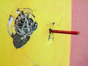 教学楼外墙,铅笔能插入